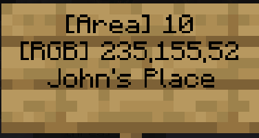 This will make the area 10 blocks large, name it “John’s Place” and show the name in orange.